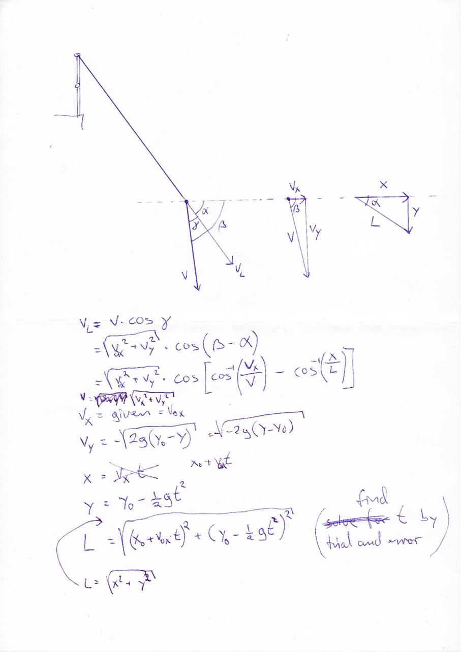 Or a simpler approach is to use the vector dot product if you are familiar with that, between the vector v and the unit vector r along the static line setup: